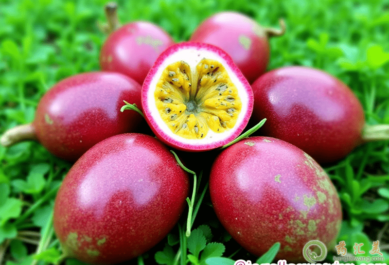 2、百香果百香果是西番蓮科、西番蓮屬草質藤本,別名雞蛋果、愛情果,它的果實卵球形,無毛,成熟時表面為紫色,原產大小安的列斯群島,現在熱帶和亞熱帶廣泛種植。它的果實可生食或作蔬菜和飼料食用,入藥之后有心奮、強壯的功效。