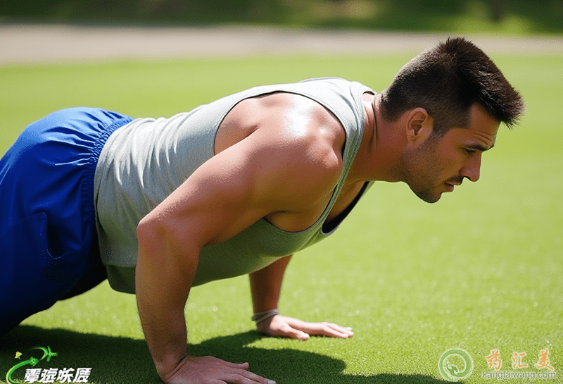 這個動作男女有別,女子和10歲以下兒童,雙膝著地,小腿翹起,頭至膝保持平直,雙掌伸平,手指向前,在肩下方撐地,掌距與肩同寬。然后用胸部伏觸地面,繼而用雙臂撐起至臂伸直。這項動作能鍛煉上肢、肩和胸部肌肉的力量和耐力,有利于保持良好身姿,避免含胸、駝背。