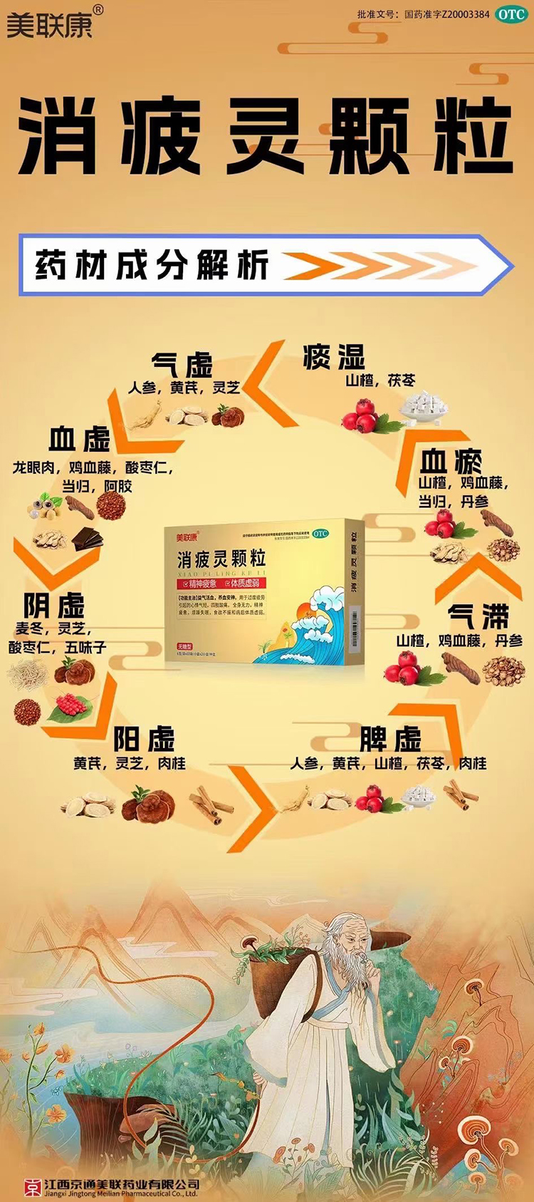 【產品名稱】消疲靈顆粒(美聯康)