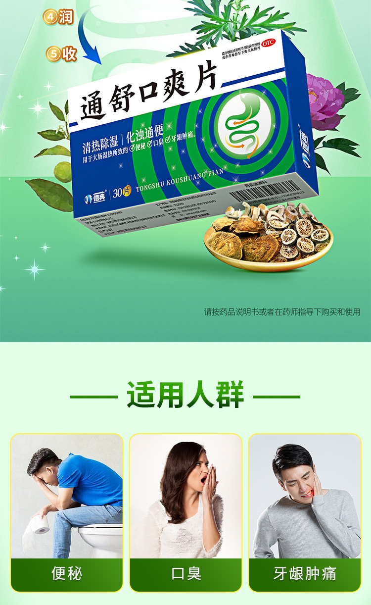 | 主要作用 | 清熱除濕,化濁通便。用于大腸濕熱所致的便秘,口臭,牙齦腫痛。 |